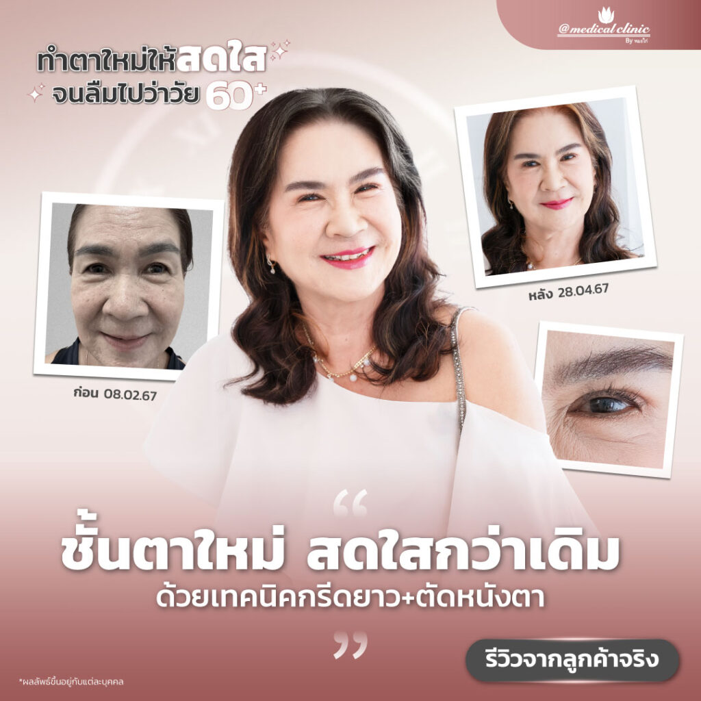 เหมาะกับคนที่มีปัญหาหนังตาตก หย่อนคล้อย ตาอูม หางตาตก ชอบชั้นตาคมชัด แก้ที่เคยทำศัลยกรรมตาสองชั้นมาแล้ว